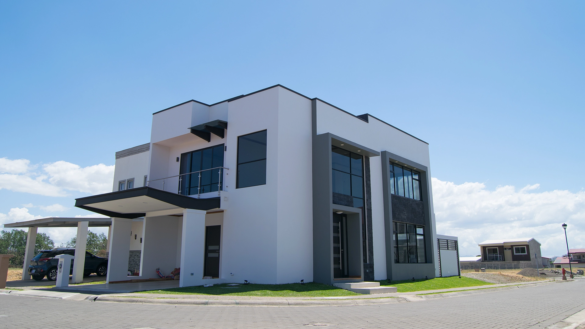 La fachada, en tonos neutros, combina grandes ventanales que permiten la entrada abundante de luz natural, creando una sensación de amplitud y conexión con el exterior.
